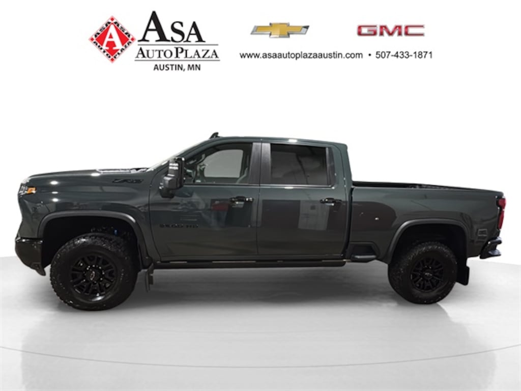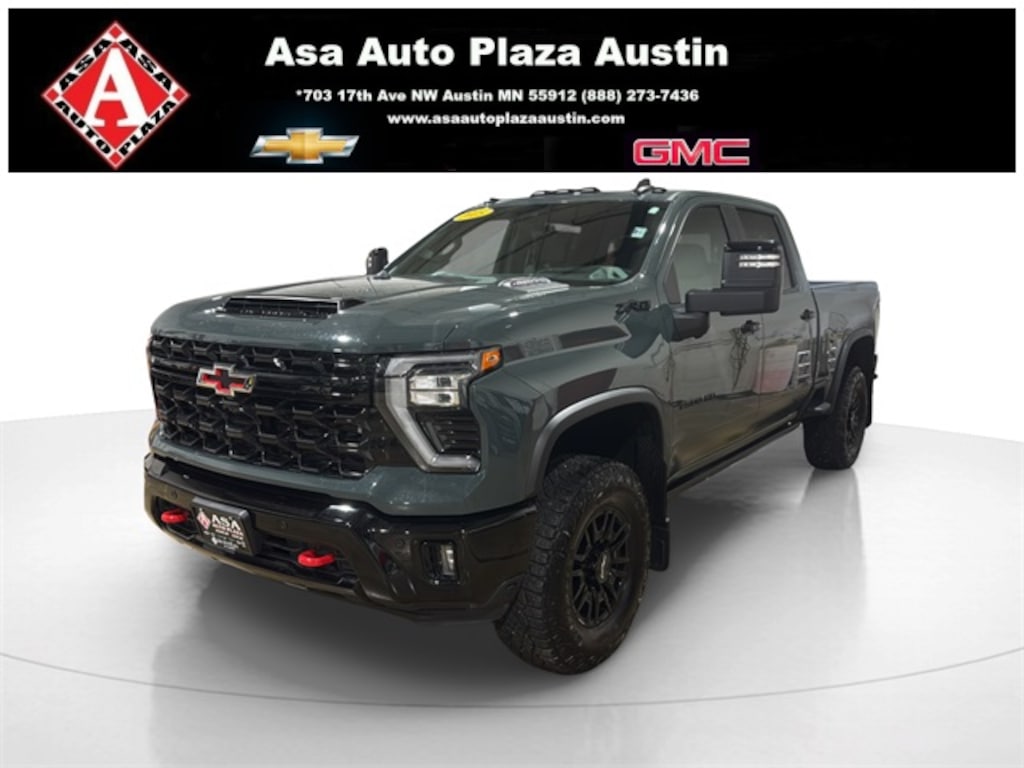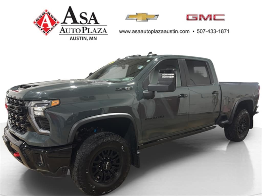 Bold! Rugged! Classic heavy duty with modern off-road aggressive stance! 2025 Chevrolet Silverado 2500HD ZR2 4WD in Cypress Gray with 10-Speed Automatic, powerful Duramax 6.6L V8 Turbodiesel and finished in Jet Black/Graystone Leather. Check out the odometer! 6,150 miles below market average! 470 hp with ASTOUNDING 975 lb-ft torque! A brute with unwavering strength, perfect for hauling heavy loads or heading off-road. Maximum conventional towing up to...you ready for this? Up to 22,000 pounds! It's ready to help on the farm, the work site or anything that you do for fun! PLUS Asa Perks at NO CHARGE to YOU! Check out Asa Perks in slide #2 or call us today to learn more about the many free benefits of Asa Perks! (507)433-1871 Asa Auto Plaza of Austin-Your Hometown Family Dealership! Proud to be AUSTIN STRONG!