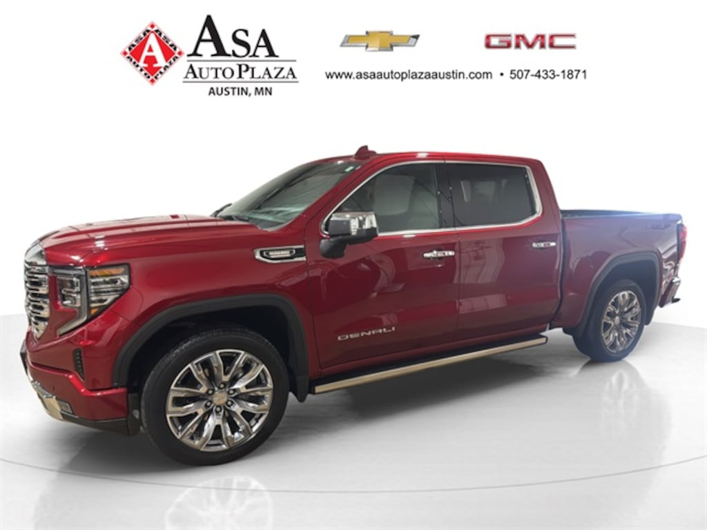 2024 GMC Sierra 1500 Denali 4WD in Volcanic Red Tintcoat, 10-Speed Automatic, popular 3.0L I6 diesel, and finished in classy Atmosphere/Brownstone Leather. Great fuel efficiency of 23/27 City/Highway MPG! The Denali trim enhances Sierra's cabin with upscale materials and technology geared toward comfort and convenience. Including premium leather (front heated and ventilated) seating, authentic wood and aluminum trim, 16-way power front seats, SUPER CRUISE, 13.4" infotainment touchscreen, and that's just the beginning! If you have some work to get done, this Sierra Denali will help you with its 305hp, 495 lb-ft torque, payload up to 2,240 pounds and towing capacity up to 13,300 pounds. Works hard and looks good doing it!! PLUS Asa Perks at NO CHARGE to YOU! Check out Asa Perks in slide #2 or call us today to learn more about the many free benefits of Asa Perks! (507)433-1871 Asa Auto Plaza of Austin-Your Hometown Family Dealership! Proud to be AUSTIN STRONG!
